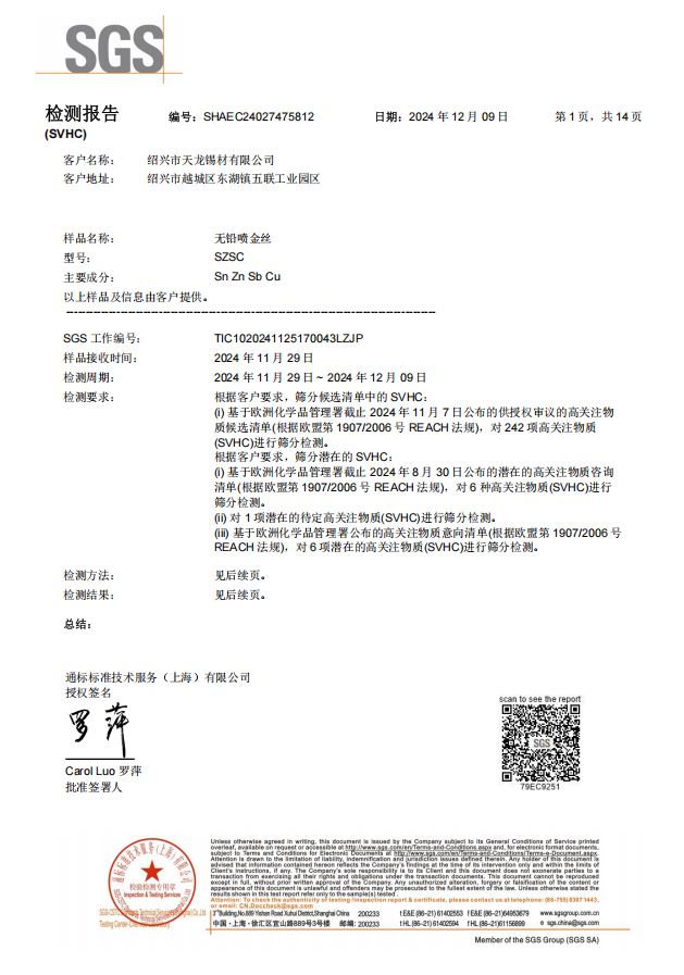 錫鋅合金絲